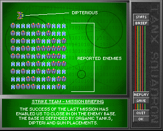The Story Earth is under seige from an alien threat. Huge genetically enhanced insects rampage across the planet. Man tries to fight back but hopes of success all but fade when their crack team is captured by the alien hordes. Desperate and out of time, a group of 10 men and women break away from their unit and form their own. Using vehicle remains from previous battles the group construct their own vehicles and weapons to counter attack the alien invaders in an attempt to crush their forces and strike at the heart of their very own homeworld. The unit was codenamed TANX. ![]() Features