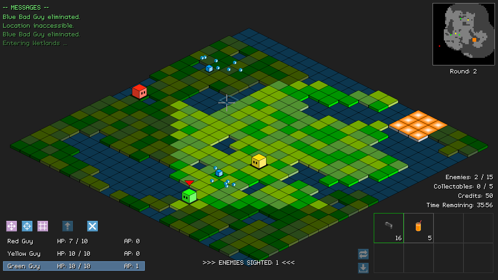 We're pleased to announce a new upcoming game: Three Guys Apocalypse! This is a turn-based strategy game, featuring the dudes from Three Guys: Red Guy, Yellow Guy, and Green Guy. The player will be tasked with leading the Guys to victory over a virus that has mutated other Guys and returned them into hideous monsters (basically, they're now colours other than red, yellow, or green, which is really bad).