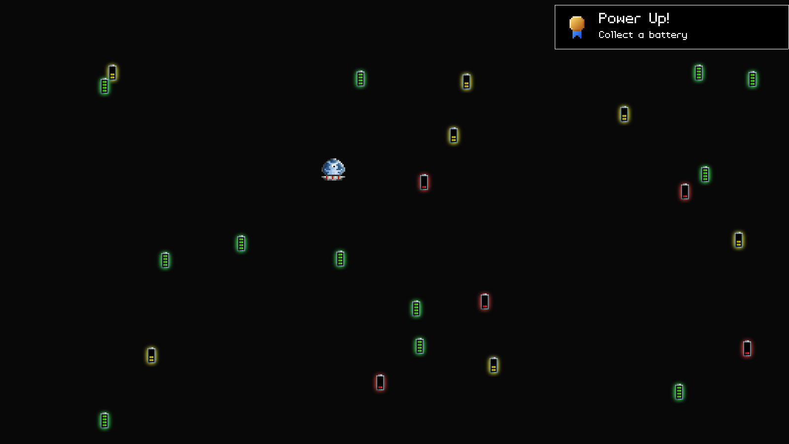 Here, we're creating a Player and placing them at the top of the screen, in the middle. We're then creating 25 batteries, of random type, and placing them in random locations about the screen. Our `logic` function is simple: