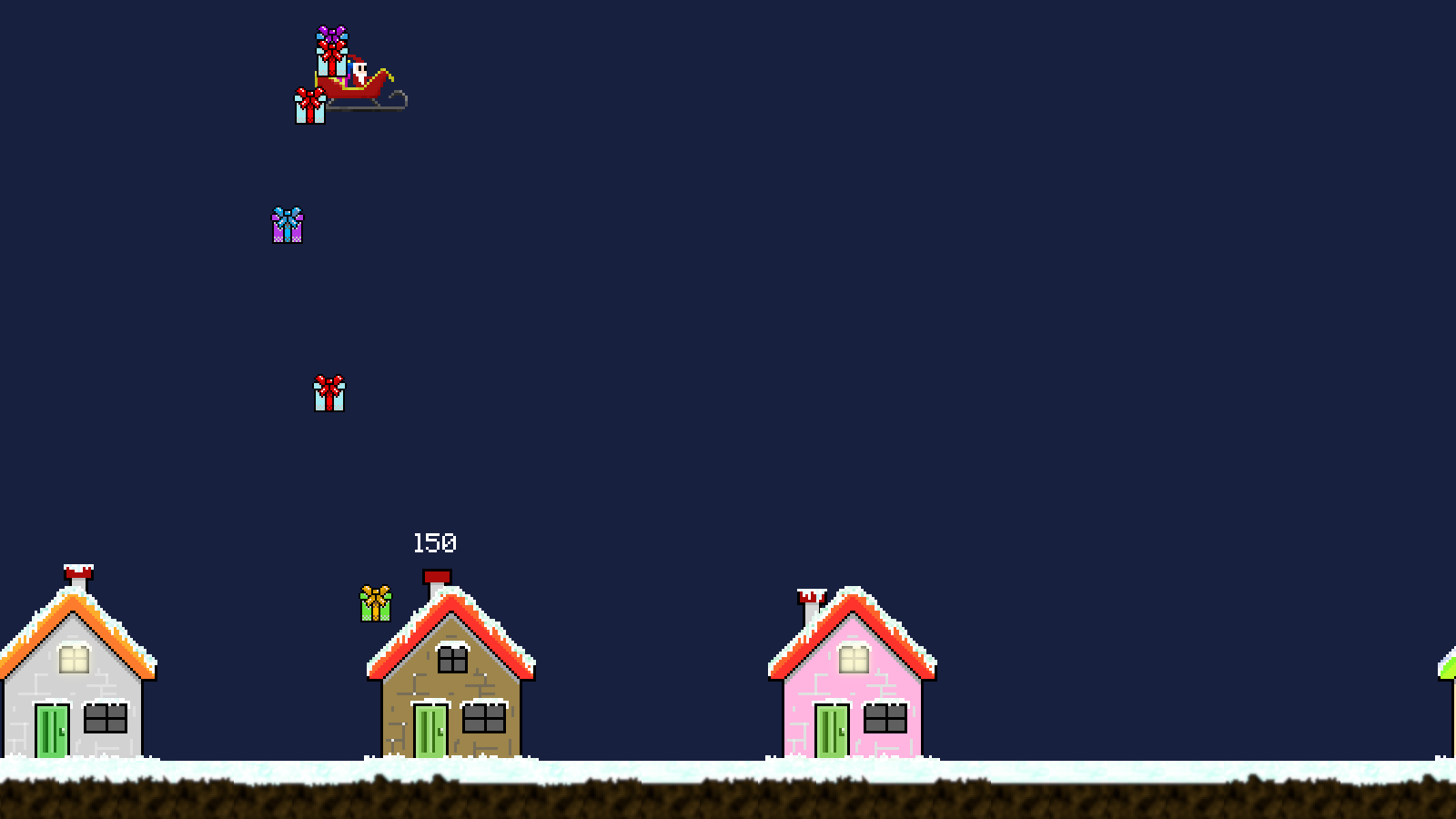 We're looping through all the entities in Stage and testing if any of them (`other`) overlap with the current entity (`e`), by calling the `collision` function from util.c. If any of them do, we call the entity's `touch` function, passing over `e` and `other`. Note something we're doing here - the gifts / coal aren't checking if they've hit a chimney, but the other way around. We want to do this so that the chimney itself can decide how it wants to handle being touched by the foreign object. There we go. We can now not only deploy gifts and coal, but also send them down chimneys to score points. Having also added in our support for entity collisions means we will find ease in supporting hazards in future parts. An optimisation that we could make to our collision checks is to add everything to a quadtree (as we did in SDL2 Gunner) so that we only check collisions against objects that are relevant to the current context; our crude doCollisions function displays an O(N-1) problem at the moment. It's something we'll fix later. So, where are we now? Well, we can score points, but we've no idea how many we've accumulated so far. We also need to be able to show the player how many gifts and coal they currently have, since ultimately the supply will be limited. In the next part, we'll introduce our HUD, so that these things can be tracked. Purchase The source code for all parts of this tutorial (including assets) is available for purchase, as part of the SDL2 tutorials bundle: From itch.io | |