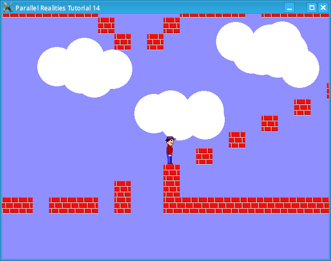 Introduction This tutorial deals with collision detection. Compile and run tutorial14. The program will read the map data file and display the map on the screen. Use the arrow keys (not the ones on the numeric pad) to move the character around the screen. Pressing space will make the character jump. Should the character fall out of the map screen it will reappear after a couple of seconds. An in-depth look We reintroduce the Entity structure and add a few extra variables to it: