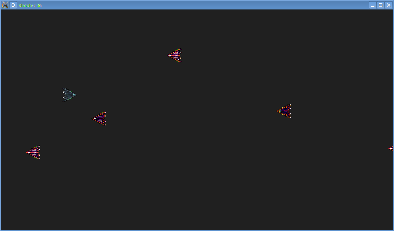 Introduction Note: this tutorial builds upon the ones that came before it. If you aren't familiar with the previous tutorials in this series you should read those first. At last, we have enemies on the screen. As we're still taking baby steps, they won't do anything interesting right now: just spawn from the right-hand side of the screen and move to the left. Still, it's a start. Extract the archive, run cmake CMakeLists.txt, followed by make to build. Once compiling is finished type ./shooter06 to run the code. A 1280 x 720 window will open, with a near-black background. A spaceship sprite will also be shown, as in the screenshot above. The ship can now be moved using the arrow keys. Up, down, left, and right will move the ship in the respective directions. You can also fire by holding down the left control key. Enemies (basically red versions of the player's ship) will spawn from the right and move to the left. Close the window by clicking on the window's close button. Inspecting the code This time around, we've not made a great deal of changes. The only file that has been updated is stage.c. If we take a look, we can see that the changes within aren't that big (although there has been some refactoring here and there). Consider the initStage function to begin with: