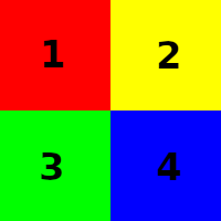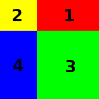 As we've seen before, SDL2 doesn't allow us to directly play with texture offsets, so to make our background scroll we have to render multiple copies at various positions. We've seen this in the previous two shooter games. Here, things need a little more consideration. We're setting up four positions, using a PointF struct (containing x and y doubles), based around the centre of the screen. Each of the four corners is offset by half the screen width and height, so that they join up. Consider the two images below: