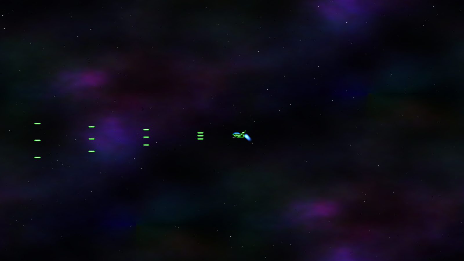 Introduction We've made a good start so far. We can fly our ship around, and see the starfield and background scroll along with it. What would be great to add in now is our weapons system. After all, this is a shoot 'em up. We're going to initally focus on the main guns, and add in the secondary weapons later on. Extract the archive, run cmake CMakeLists.txt, followed by make, and then use ./shooter3-02 to run the code. You will see a window open like the one above. Use the WASD control scheme to move the fighter around. Hold J to fire your main gun. The KIT-E fighter will support a number of upgrades, including rate of fire, number of shots fired, and damage. To modify these, you can edit game.c (starting at line 15), recompile, and run again: