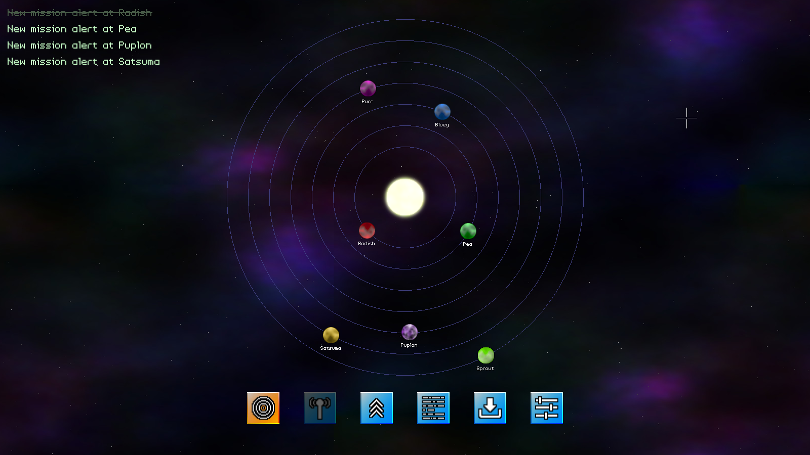 We've made a modification here to loop through all our planets and look for planets that have available missions. If so, we're going to render the "New mission alert ..." text in the top left. While doing that, we're testing if the mission has been completed. If so, we'll dim the text colour we originally planned to use (c, an SDL_Color), and also draw a line through it, to show it has been finished. Note that our game still permits the player to undertake the mission as many times as they like, since it's just a demo build..! Finally, we come to loadPlanets: void loadPlanets(void) { // snipped for (node = root->child; node != NULL; node = node->next) { // snipped if (missionNode != NULL) { // snipped p->mission->requires = toArray(cJSON_GetObjectItem(missionNode, "requires")->valuestring, &p->mission->numRequires); // snipped } // snipped } // snipped }We've added in a single line here, to set our Planet's (`p`) `mission`'s `requires` field. This works in the same way as the enemyTypes when loading a mission. The "requires" field in our JSON is a comma separated list of planets, with the numRequires of the mission collecting the array length. That's all the updates to planets.c. We just need to update intermission.c to put it into effect. A single line update to `logic` is all we have to do:
