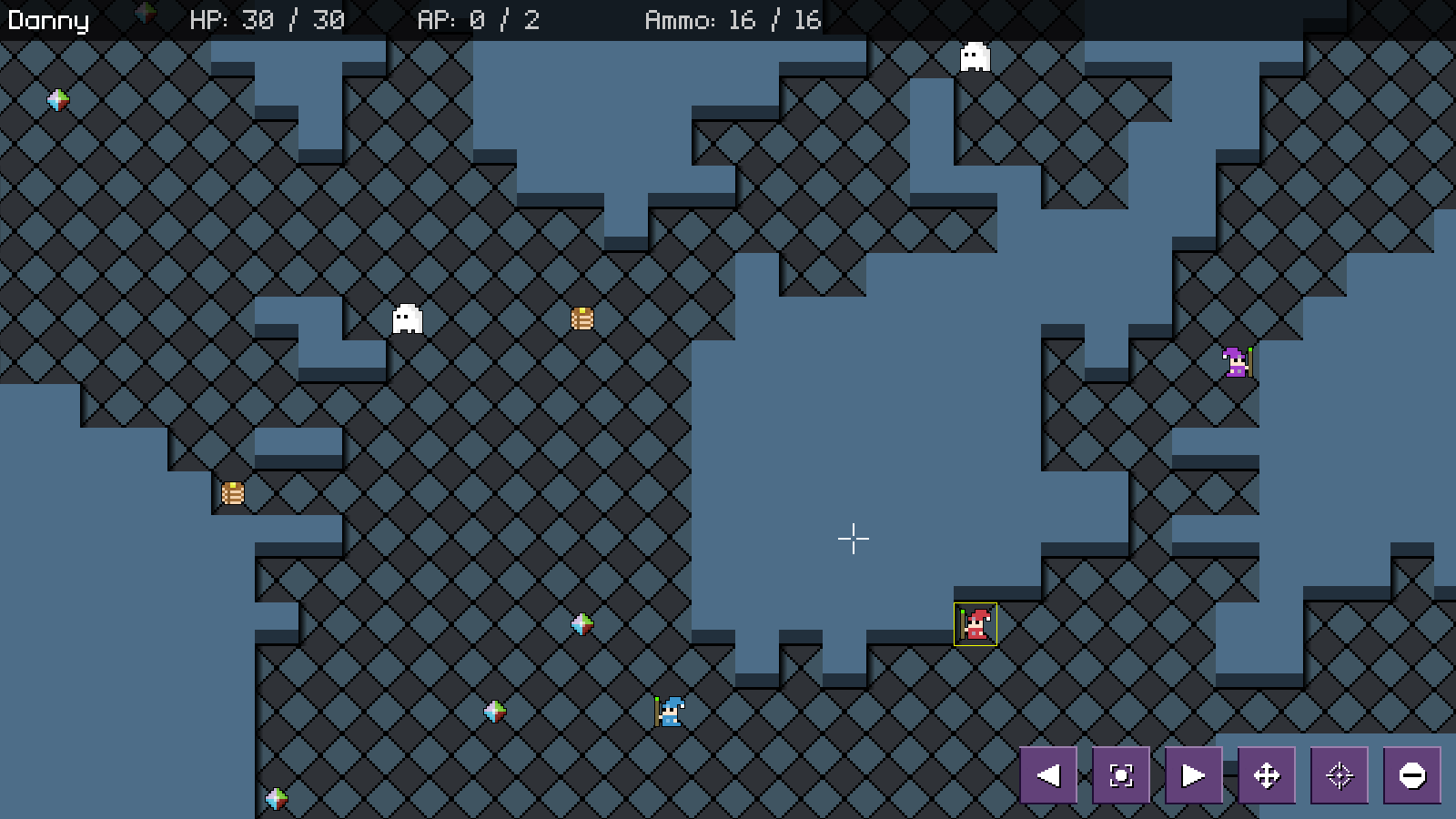 We've updated the unit's ai type to AI_PASSIVE, so our white ghosts are once again passive spirits, who will wander the map and not react to the mages, at all. That's our map generation done! We've now got something more interesting to work with. Of course, there is plenty more that could be done with our map generation to make things even better, but what we have here is enough for now and a great starting point. Speaking of interesting things, how about we add in MapTiles that the ghosts can move across, but the player cannot? A hazard, if you will. In the next part, we're going to look at adding in slime tiles. These tiles will block the mage's movement, but allow the ghosts free passage (as they can just float over the top). However, the mages won't be at a complete loss, as they will be able to target the slime tiles and destroy them! Purchase The source code for all parts of this tutorial (including assets) is available for purchase: From itch.io It is also available as part of the SDL2 tutorial bundle: |