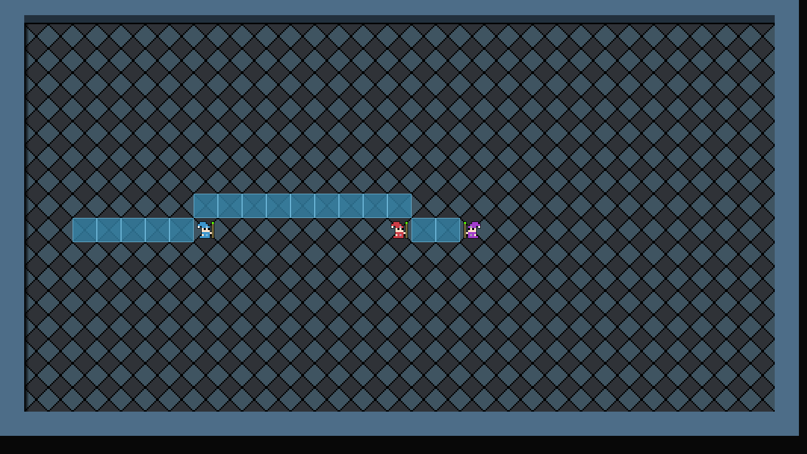 Introduction Now that we have our movement and navigation setup, via A*, we can look into controlling multiple units. Most turn-based strategy games involve the player having command over several units, so in this part we're going to look into how we can switch between them. Extract the archive, run cmake CMakeLists.txt, followed by make, and then use ./sdl2TBS02 to run the code. You will see a window open like the one above, showing three wizards in a small room, surrounded by walls. Once again, you can click on any floor tile to command the currently selected wizard to move. Click on any other wizard to select and take control over them. You can also use the mouse wheel to cycle through the wizards. Once you're finished, close the window to exit. Inspecting the code As expected, this part is not nearly as long as part 1. Also, due to the foundations we laid, adding in support for controlling multiple characters is fairly straightforward. Starting with player.c, we've updated doPlayer: