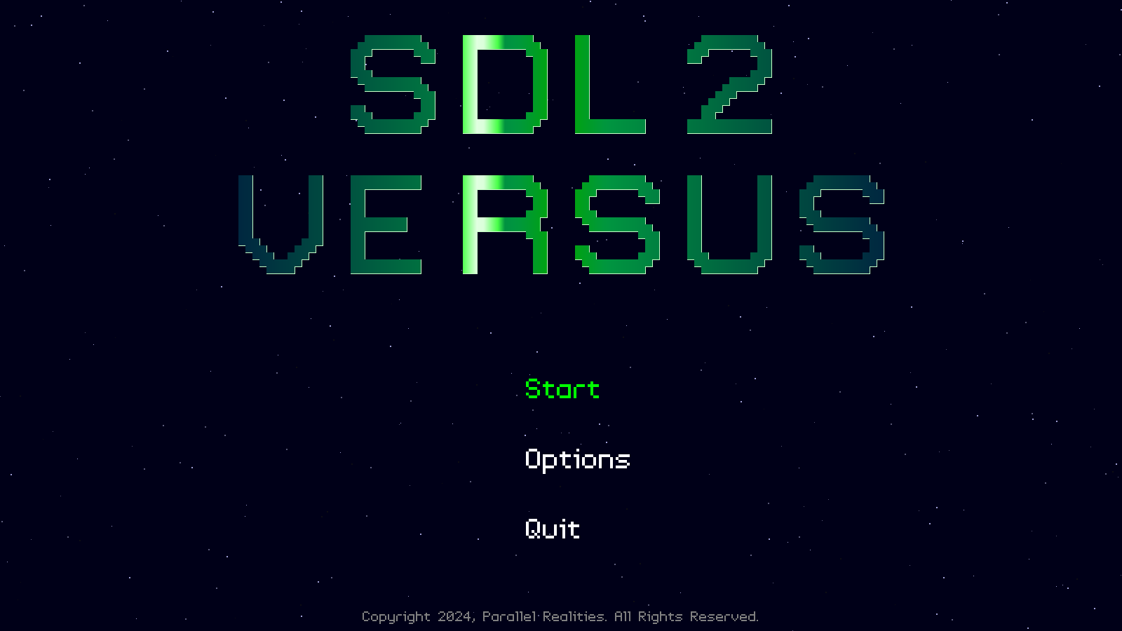 We've added initStars to our initFuncs array. Our title screen finished! It features a pleasing scrambling effect of our logo, as well as a horizontal shine. There's also a nice little starfield is the background (more or less confirming our game is set in space..!). So, we have a title screen, the ability to configure matches, goals for our games, and support for control configuration. All that is missing is sound and music, and some nice little finishing touches (you might be wondering why we're passing a camera to our starfield rendering - we'll get to that!). So, in our final part, we'll add all of these in, and conclude the creation of this game. Purchase The source code for all parts of this tutorial (including assets) is available for purchase, as part of the SDL2 tutorials bundle: From itch.io | |