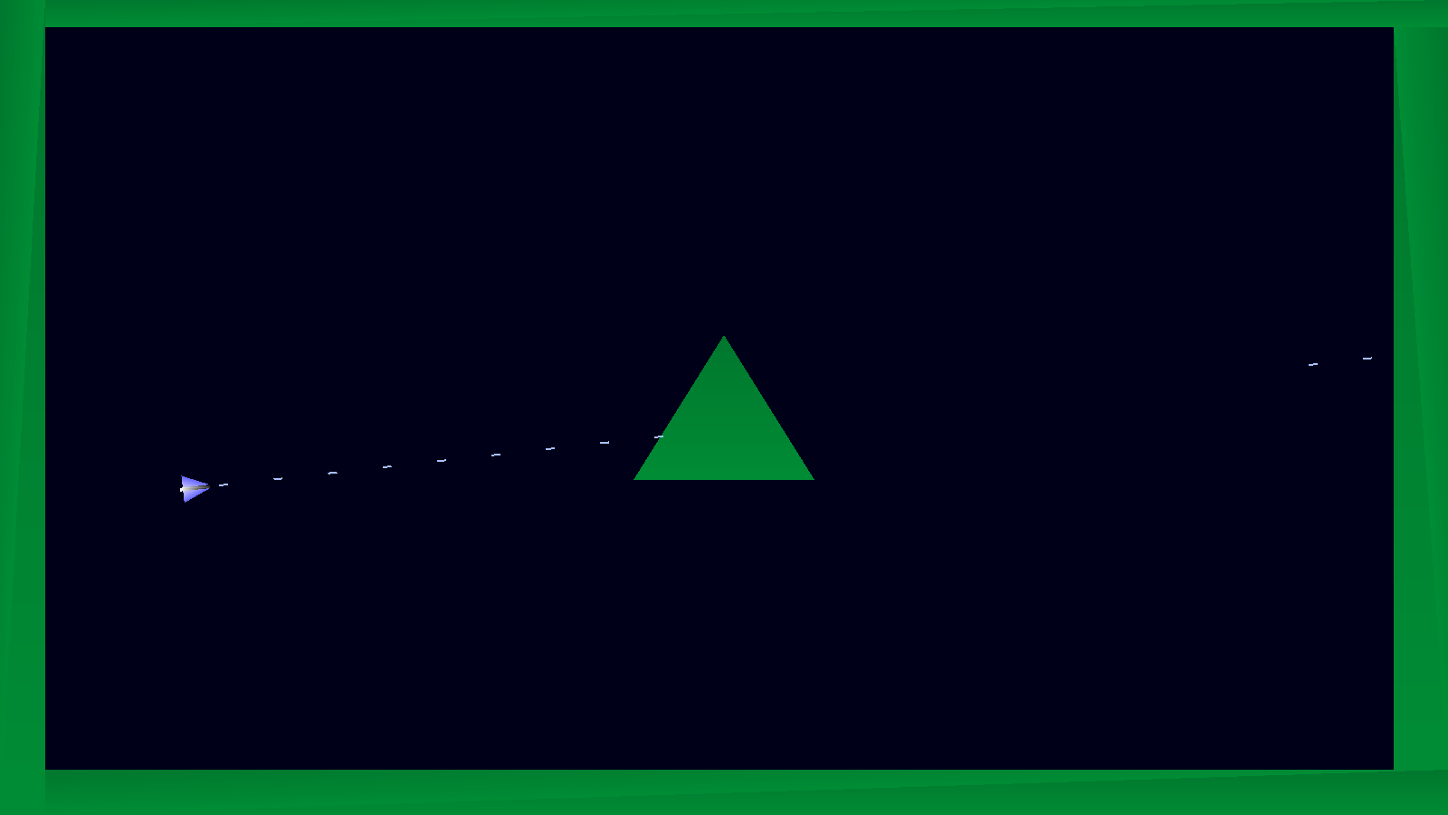 Introduction We can fly, we can shoot. What we need now is a place to do it all. Up until now, we've been doing these things in a dark void. Some sort of environment would be good. In this part, we're going to introduce just that, by loading the world data from a file, and drawing it. We'll also be able to interact with it, by flying into it and shooting bullets into it. Just like our models, our zones are constructed from triangles, and are loaded from files that detail the coordinates of all the points. Extract the archive, run cmake CMakeLists.txt, followed by make, and then use ./versus03 to run the code. You will see a window open like the one above, with the player's ship located just below the middle of the screen. Use the same controls as before. Note how if you fly into the walls or central point you will bounce off them. Bullets that are fired will also accurately strike the walls and middle triangle. Once you're finished, close the window to exit. Inspecting the code Loading, drawing, and processing our world is extremely simple, as we'll see. At this point, there isn't very much to it, although things will get a bit more complicated later on. For now, we can get everything setup, and lay the foundations. Starting with structs.h: